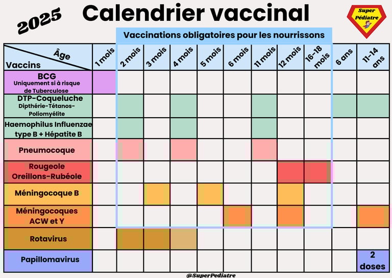👉 Télécharger le PDF du calendrier vaccinal 2025 :https://newsletter.superpediatre.fr/calendrier-vaccinal